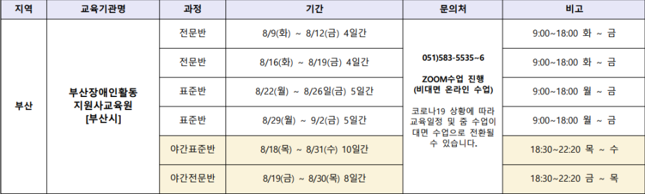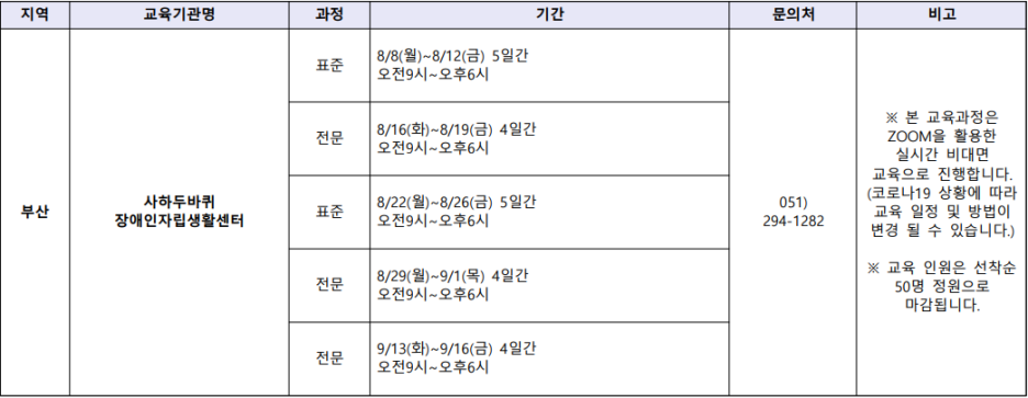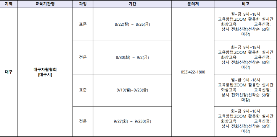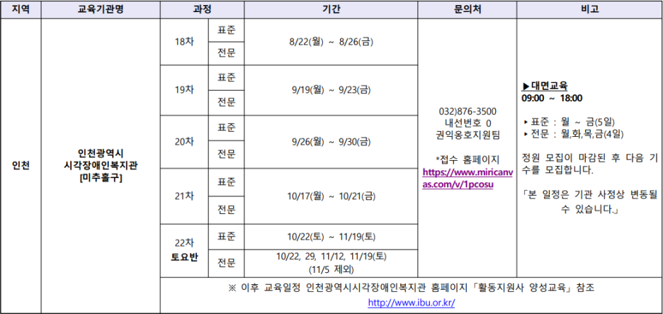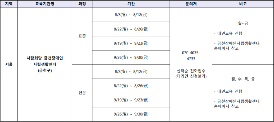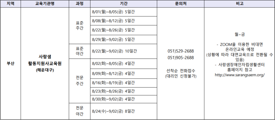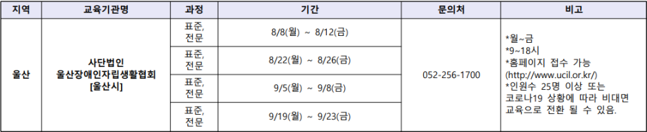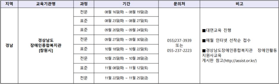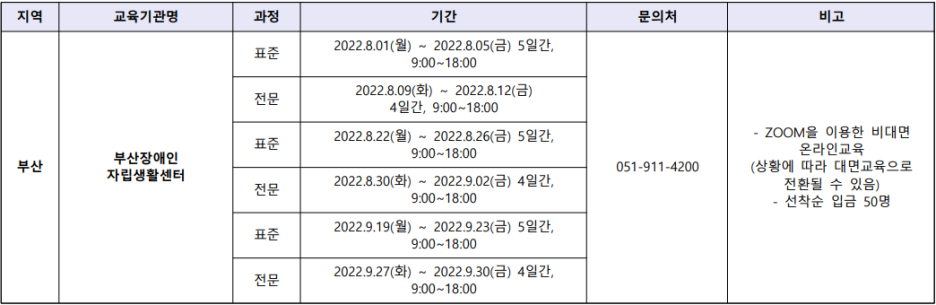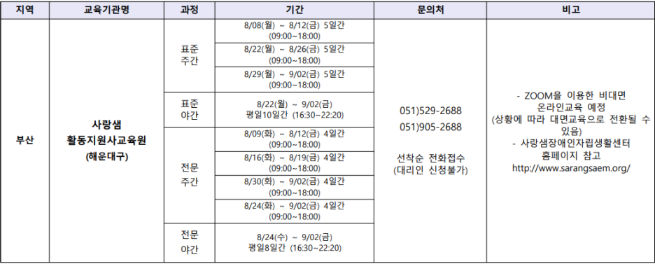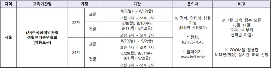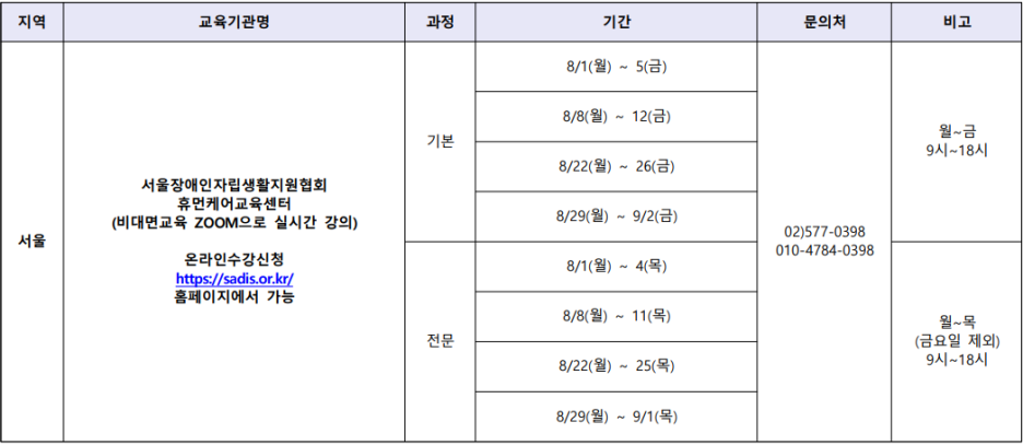 2022년 8월 장애인 활동 지원사 교육 일정 / 기관