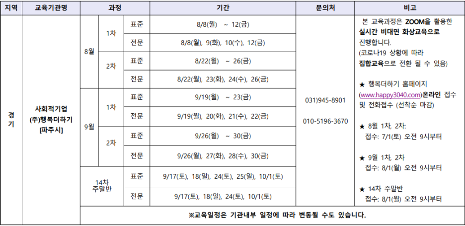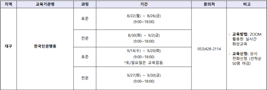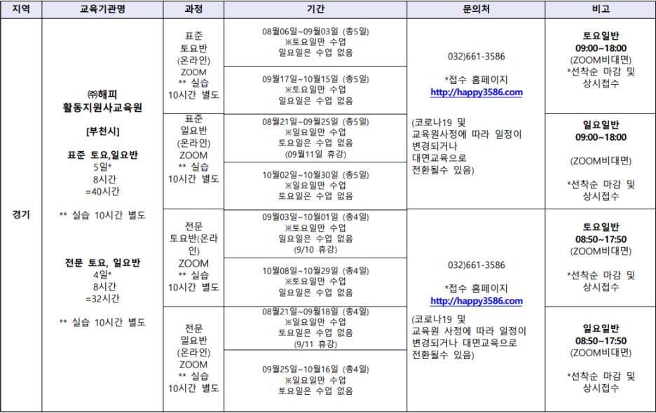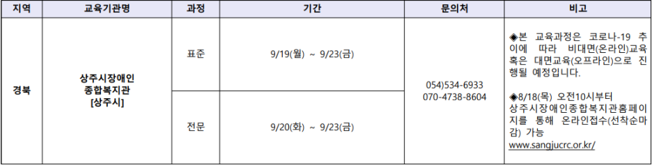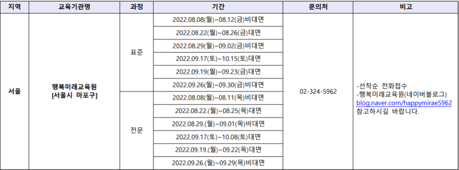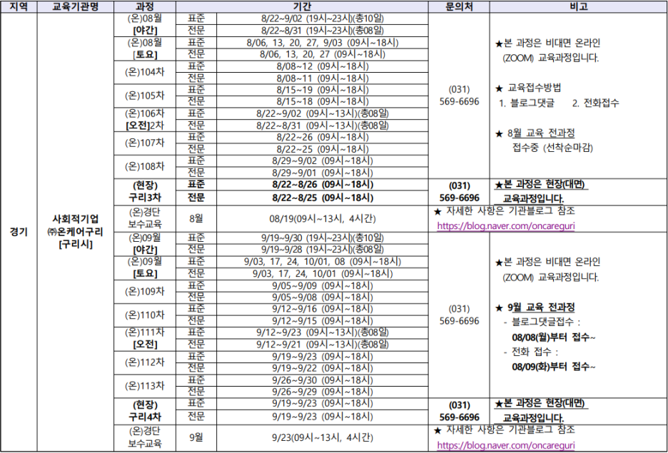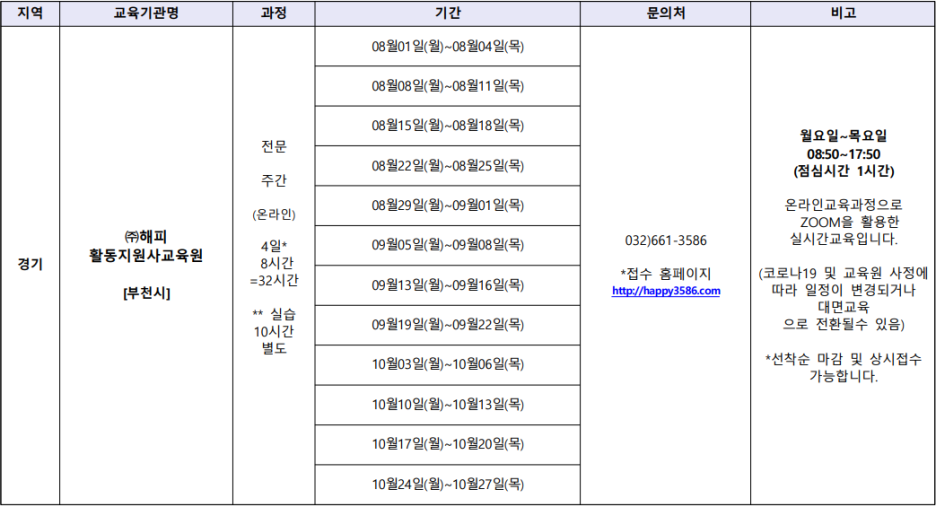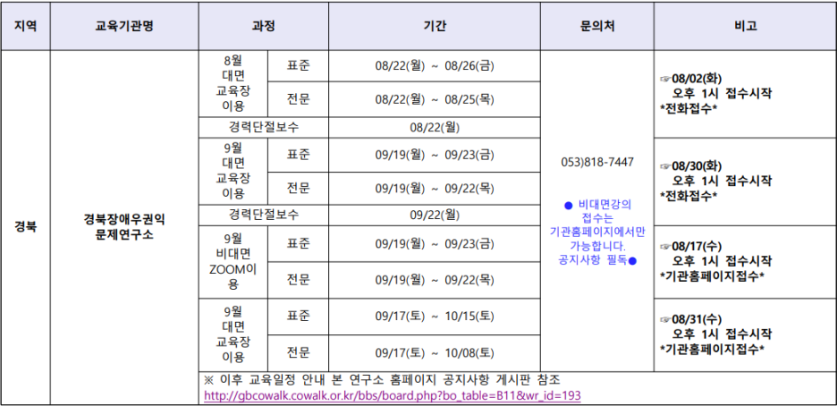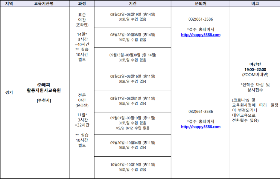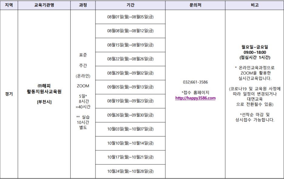 2022년 8월 장애인 활동 지원사 교육 일정 / 기관