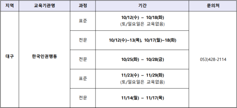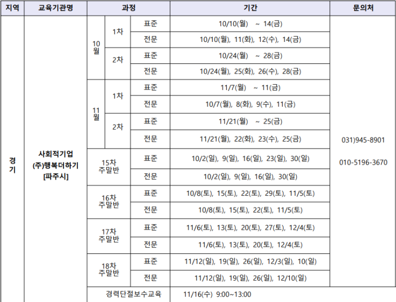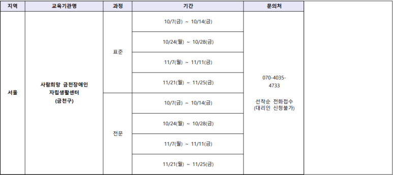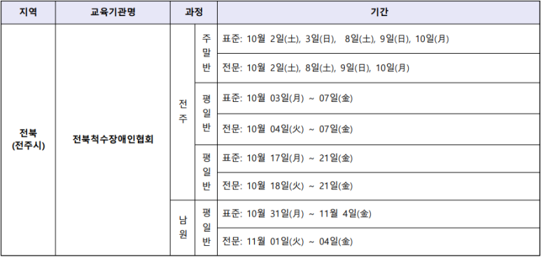 2022년 10월 장애인 활동 지원사 교육 기관