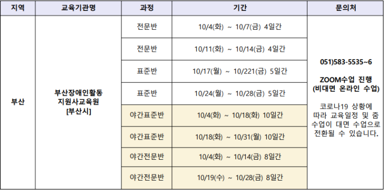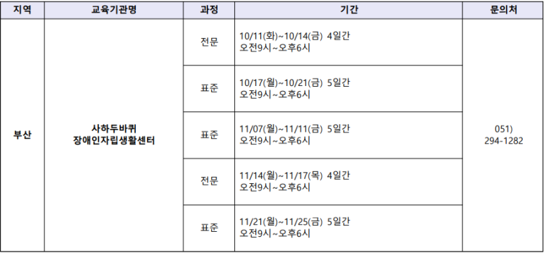부산 장애인 황동지원사 교육원